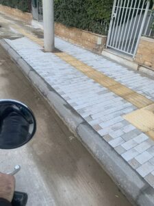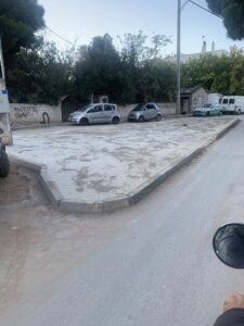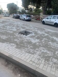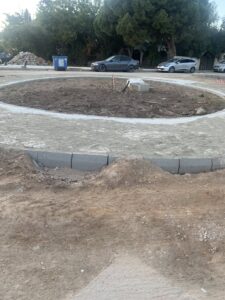 Δίπλα σε αυτό το κυκλικό πεζοδρόμιο, χτίστηκε ένα τριγωνικό πεζοδρόμιο!χωρίς πράσινο, έχει μια θέση που δεν ξέρουμε αν είναι για φύτευση δέντρου ή για φως .